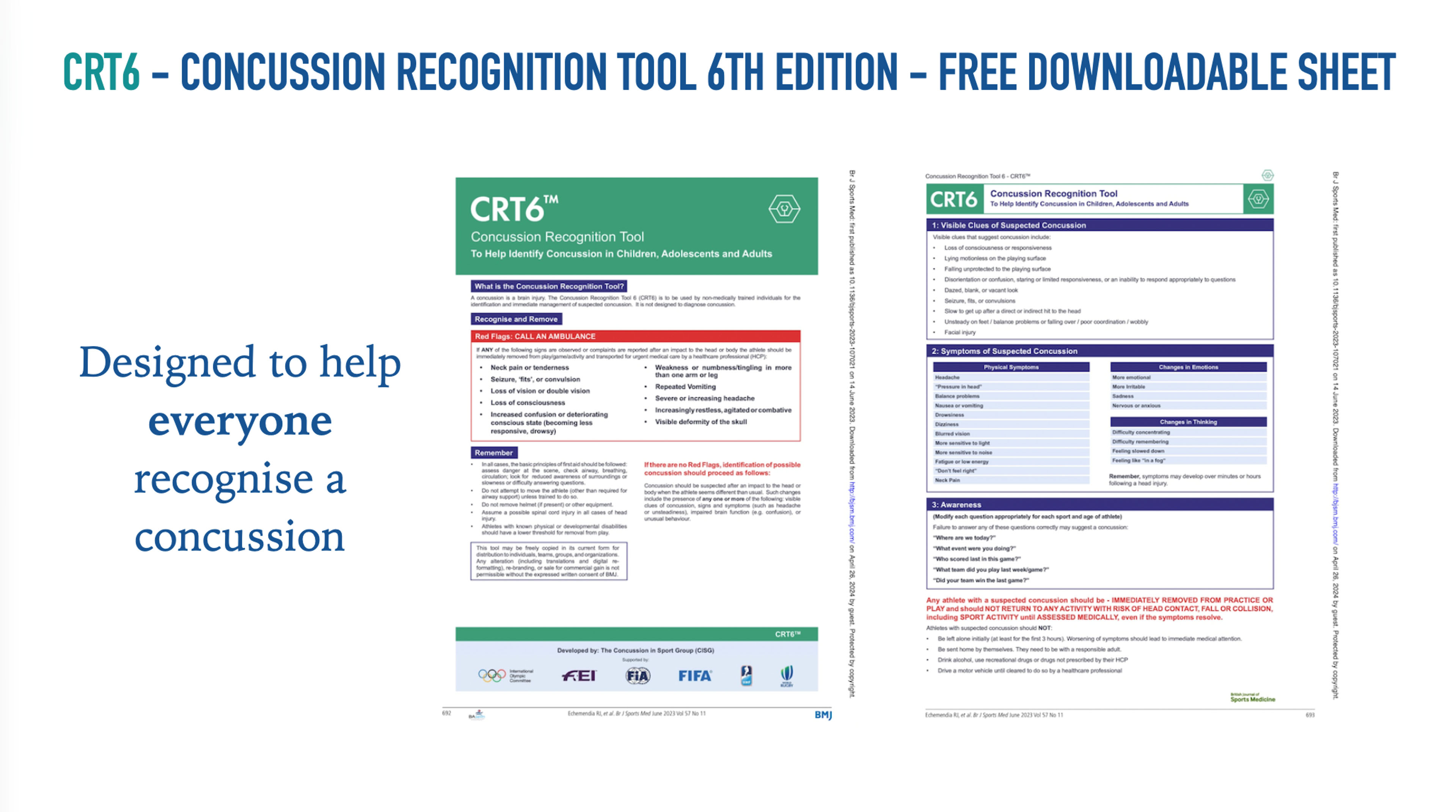 Would you recognise a concussion? The CRT6 form is designed to help everyone recognise a concussion and respond appropriately.